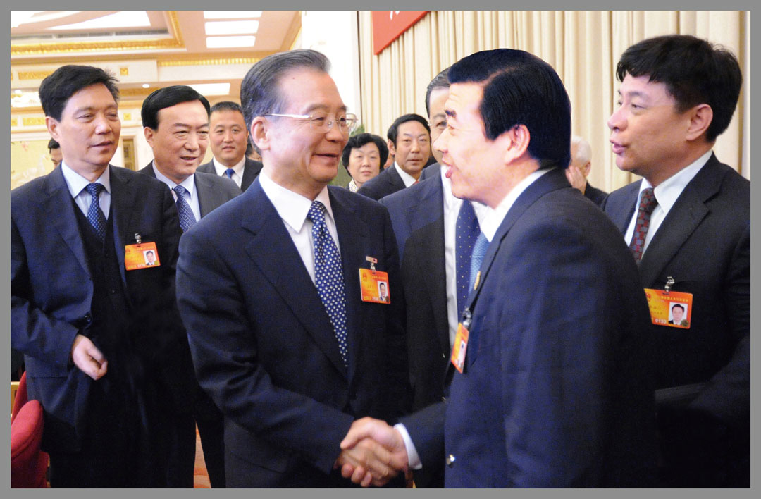 時(shí)任中央政治局常委、國(guó)務(wù)院總理溫家寶與楊建忠董事長(zhǎng)親切握手